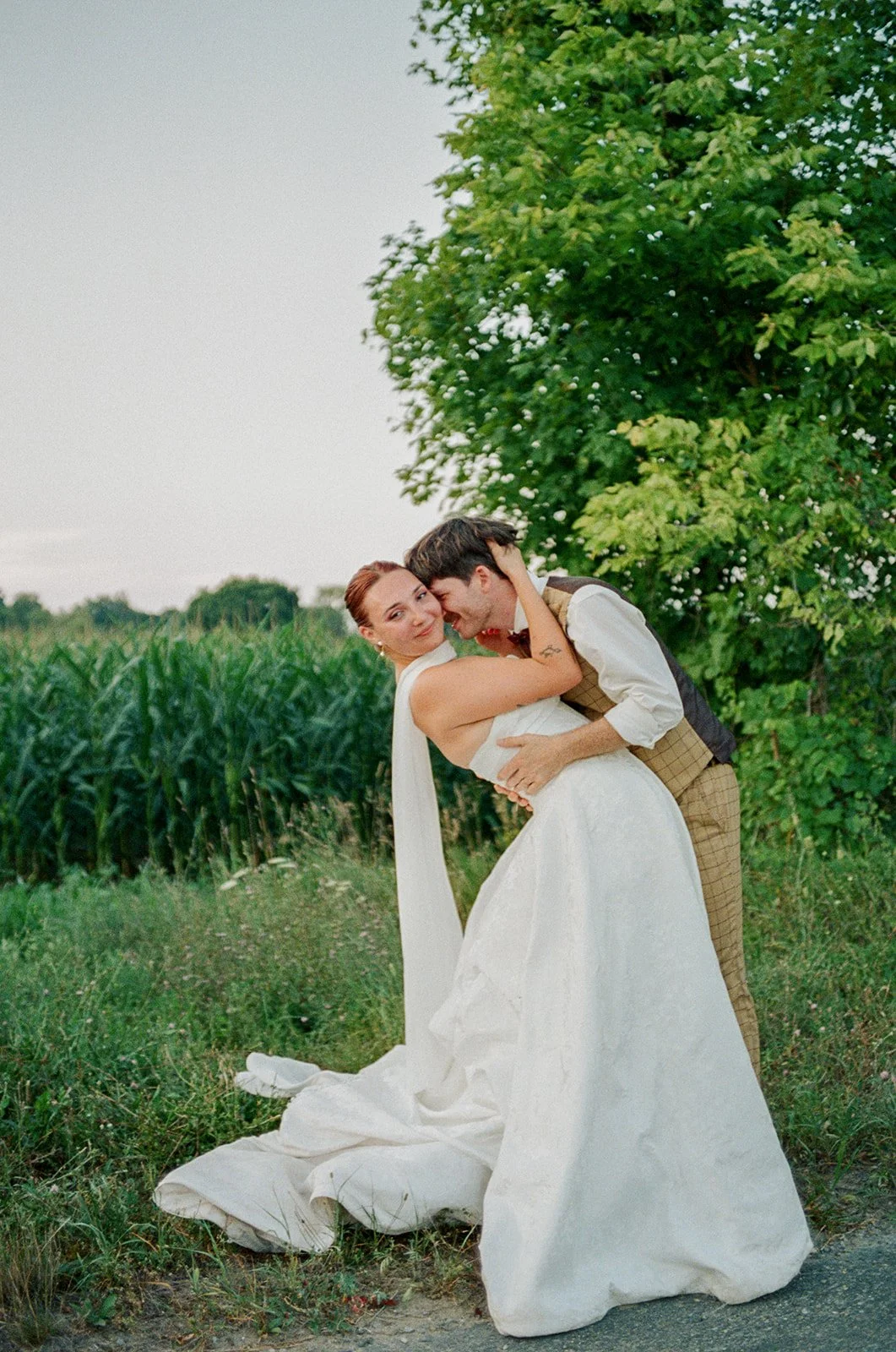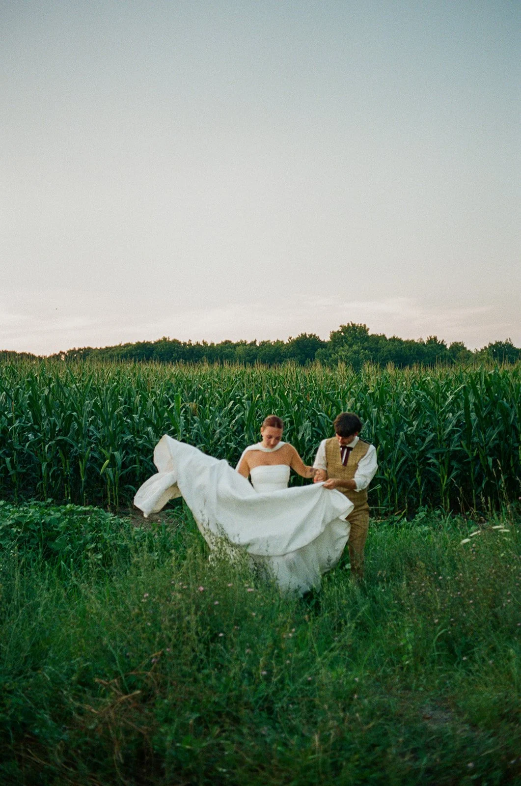We quite literally ran out for about 5 minutes to catch a quick golden hour moment on film. Had to feature those midwest cornfields but could not miss the dance floor for a second too long!